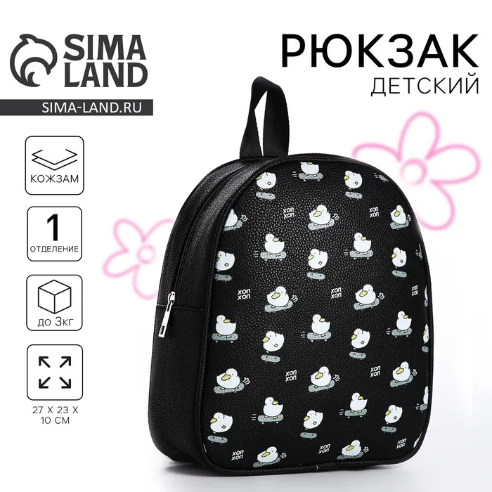 Рюкзак из искусственной кожи «Утёнок на скейте» 27×23×10 см — Характеристики