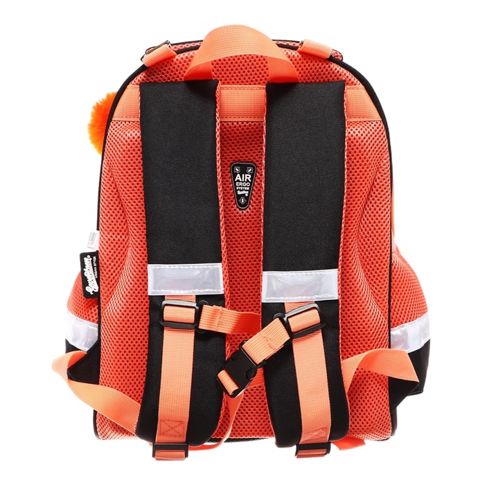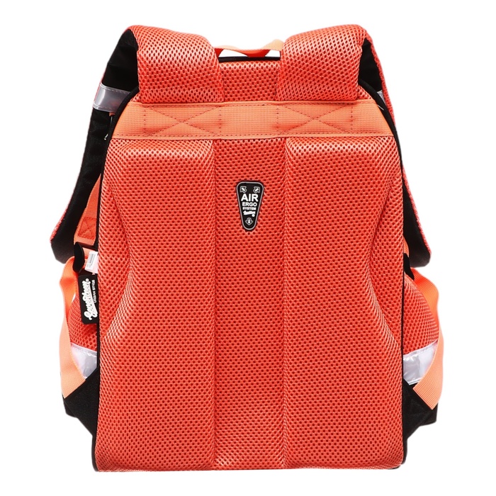 Размер 35х26х13 см. Ранец с одним отделением на молнии. Внутри основного отделения - разделители для книг и тетрадей; эргономическая спинка Air Ergo Seventeen выполнена в виде накладок анатомической формы из нескольких слоев вспененных синтетических материалов, обтянутых воздухообменной сеткой; передняя панель и спинка выполнены из легкого, водонепроницаемого и устойчивого к деформации материала EVA, благодаря чему ранец держит форму. Лямки анатомической S-образной формы обтянуты воздухообменной сеткой, регулируются по длине; на лямках предусмотрена регулируемая грудная стяжка, которая снимает часть нагрузки с плеч и лучше фиксирует рюкзак на теле. По бокам - вместительные сетчатые карманы. Дно рюкзака выполнено из прорезиненного материала, которому не страшны влага и грязь. Удобная уплотненная ручка для переноски и петелька для подвешивания. Для безопасности рюкзак снабжен светоотражающими элементами.