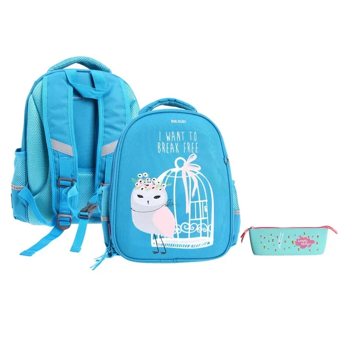 Рюкзак каркасный 36 х 28 х 17 см, + пенал, Bruno Visconti "CUTE OWLS. КОКЕТКА", бирюзовый — Характеристики