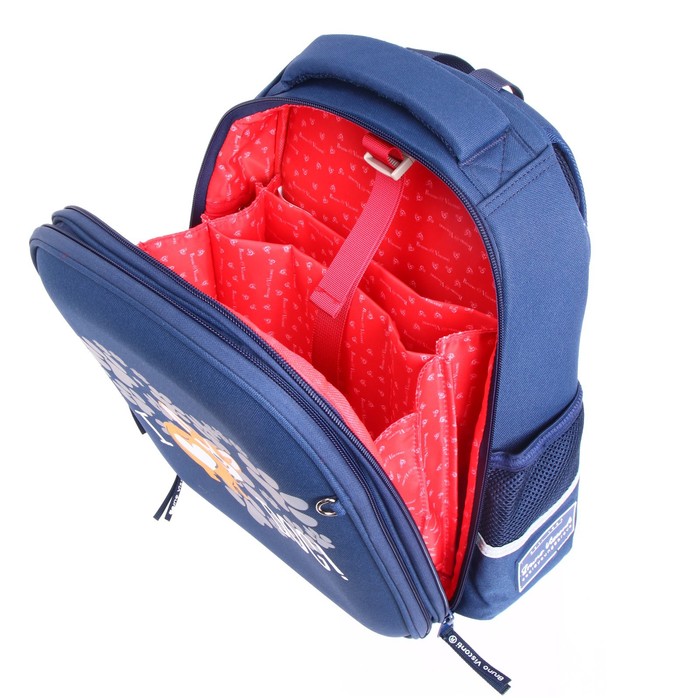 Рюкзак имеет два основных отделения: первое отделение содержит органайзер с молнией и карман-сеточку, второе отделение состоит из трех частей с двумя разделителями с фиксирующим ремнем и дополнено карманом на молнии для карточки. Рюкзак снабжён четырьмя светоотражающими элементами. Усиленное дно рюкзака оснащено резиновыми ножками, защищающими от загрязнения и влаги.