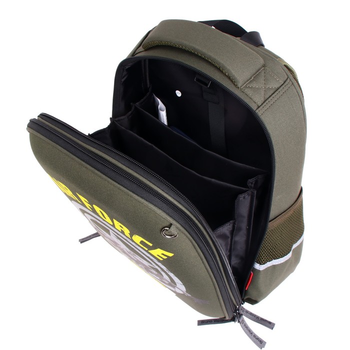 Рюкзак имеет два основных отделения: первое отделение содержит органайзер с молнией и карман-сеточку, второе отделение состоит из трех частей с двумя разделителями с фиксирующим ремнем и дополнено карманом на молнии для карточки. Рюкзак снабжён четырьмя светоотражающими элементами. Усиленное дно рюкзака оснащено резиновыми ножками, защищающими от загрязнения и влаги.