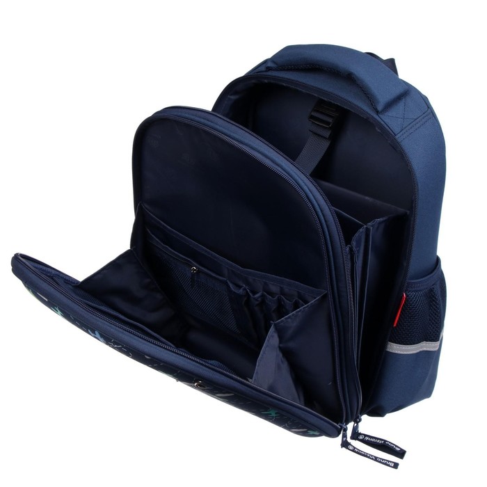 Рюкзак имеет два основных отделения: первое отделение содержит органайзер с молнией и карман-сеточку, второе отделение состоит из трех частей с двумя разделителями с фиксирующим ремнем и дополнено карманом на молнии для карточки. Рюкзак снабжён четырьмя светоотражающими элементами. Усиленное дно рюкзака оснащено резиновыми ножками, защищающими от загрязнения и влаги.