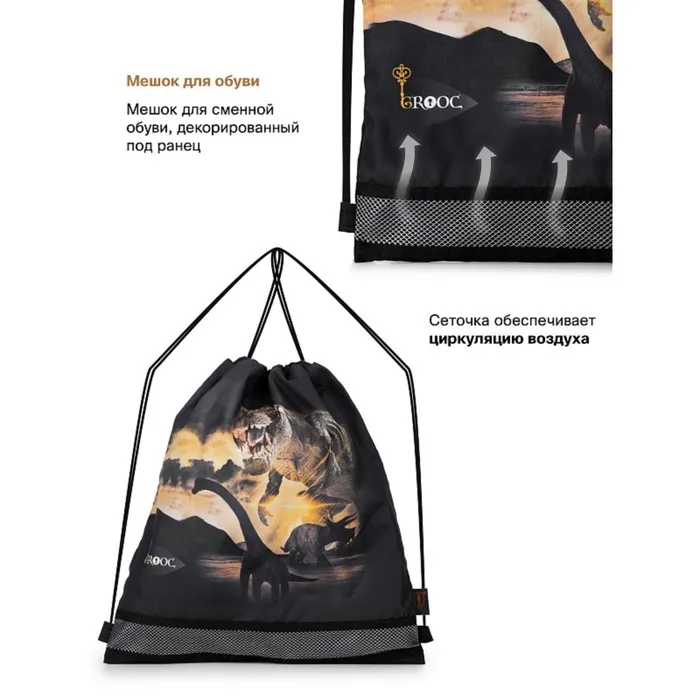 - Мешок для сменной обуви, декорированный под ранец, с сеточкой для циркуляции воздуха.