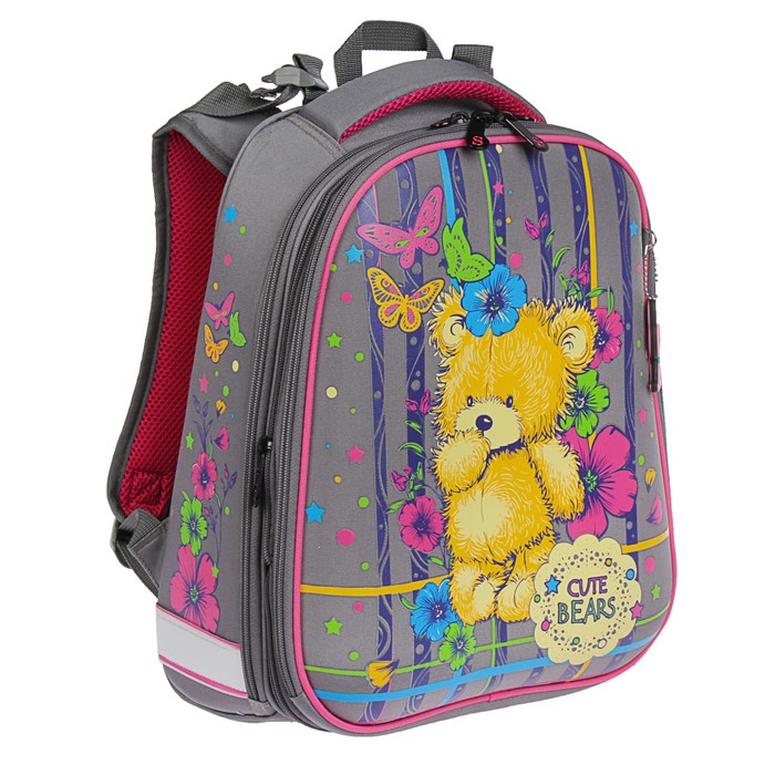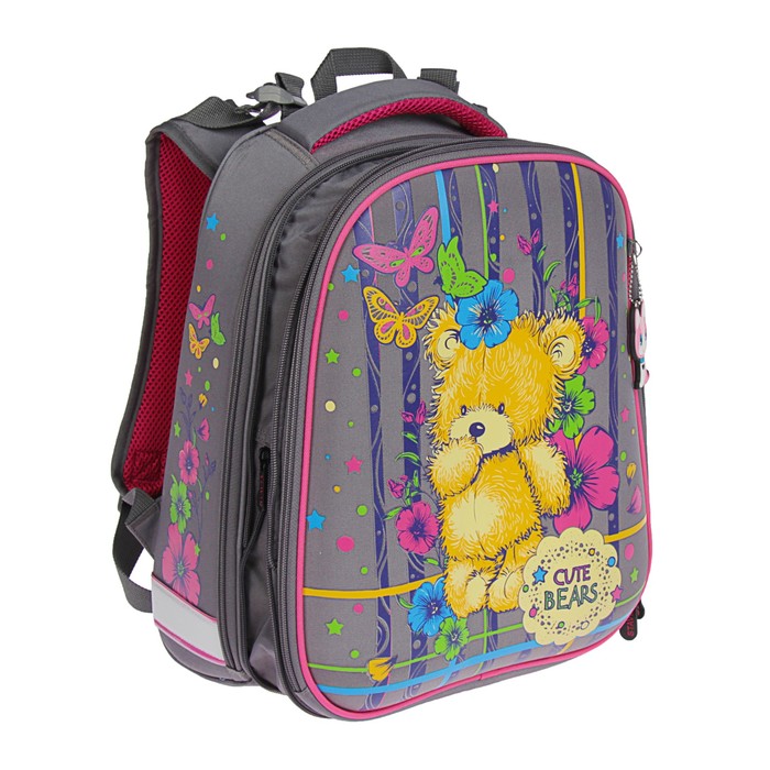 Рюкзак каркасный школьный 36×28×16 см, эргономичная спинка, Stavia «Мишка», серый — Характеристики
