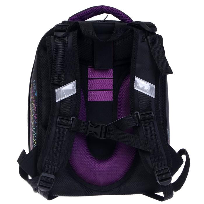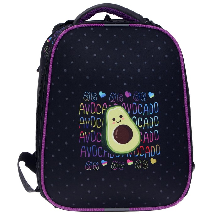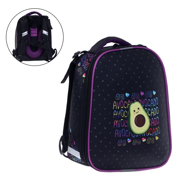Рюкзак каркасный школьный 38 х 30 х 16 см, эргономичная спинка, Stavia "Авокадо", чёрный/сиреневый — Характеристики