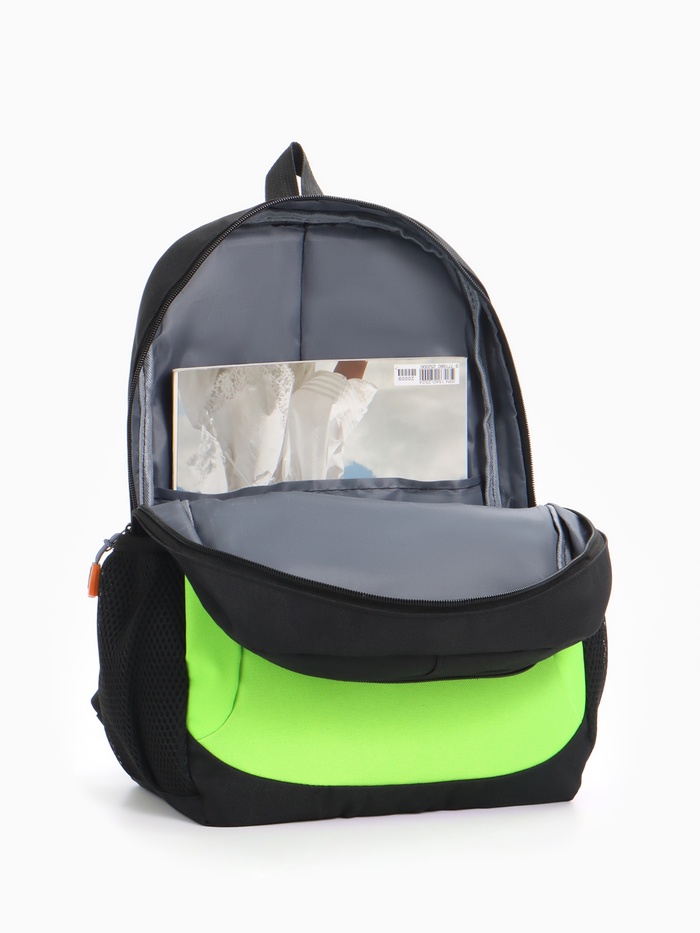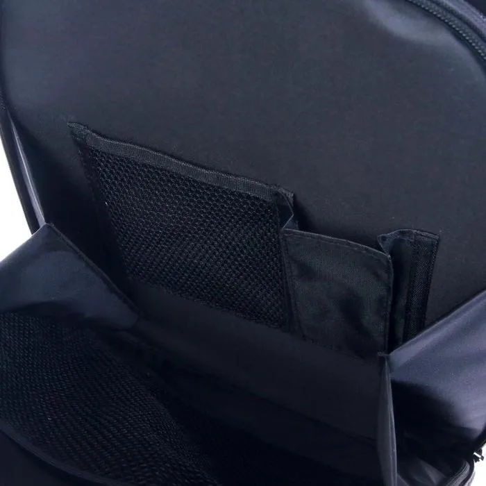 Ранец изготовлен из формованного EVA-материала и высокопрочного непромокаемого полиэстера. Размер 30 х 38 х 16 см. Вес 900 г. Прочные формованные стенки и дно ранца позволяют надежно защитить содержимое от влаги, загрязнений и предотвращают его замятие. Ранец с двумя вместительными отделениями, закрывающимися на реверсивную пластиковую молнию с металлическими «бегунками»; в первом — «плавающие» перегородки для тетрадей и учебников, во втором – большой карман из сетки и карманы-органайзеры для канцелярских принадлежностей. Плотная спинка с анатомическими элементами дополнительно укреплена пластиком, сверху – дышащая трехслойная сетка. Лямки-маечка плотные, мягкие. Регулируются по длине и высоте, что позволяет без труда отрегулировать их по росту ребенка. Ранец снабжен надежным нагрудным фиксатором. Есть удобная мягкая ручка для переноски и дополнительная петлевая ручка для размещения ранца на крюке. На дне ранца есть две пластиковые ножки. В соответствии с требованиями к безопасности на дороге, ранец имеет светоотражающие элементы на лямках и корпусе.