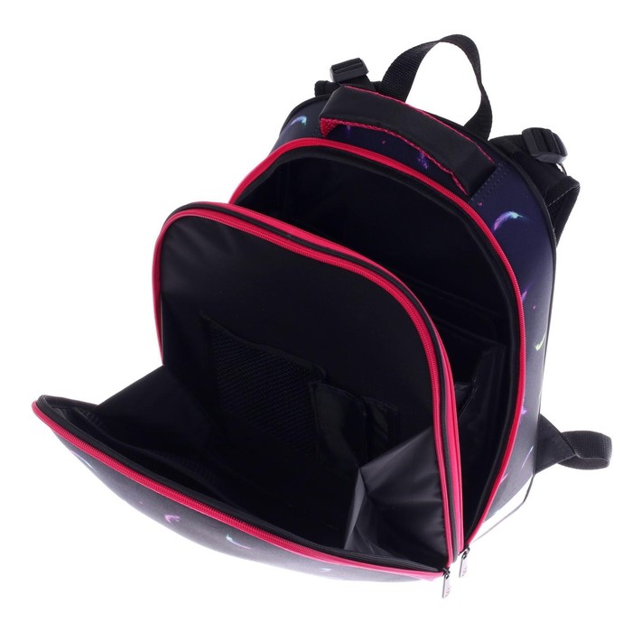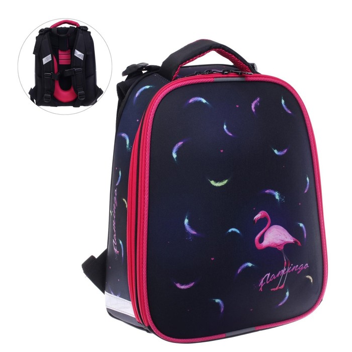 Рюкзак каркасный школьный 38 х 30 х 16 см, эргономичная спинка, Stavia "Фламинго мини", чёрный/синий/розовый — Характеристики