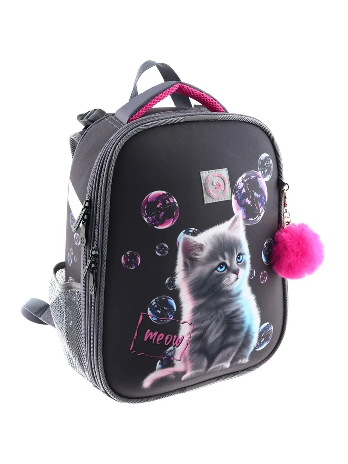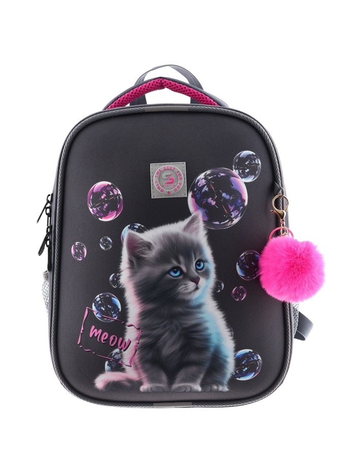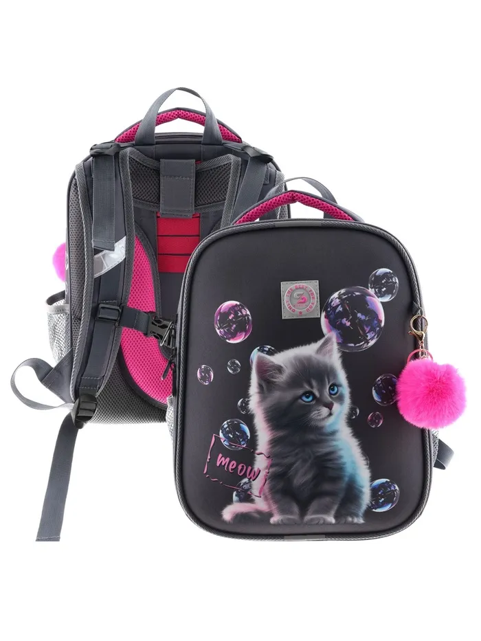 Рюкзак каркасный, школьный, 38×30×16 см, эргономичная спинка «Котенок с пузырями» — Характеристики