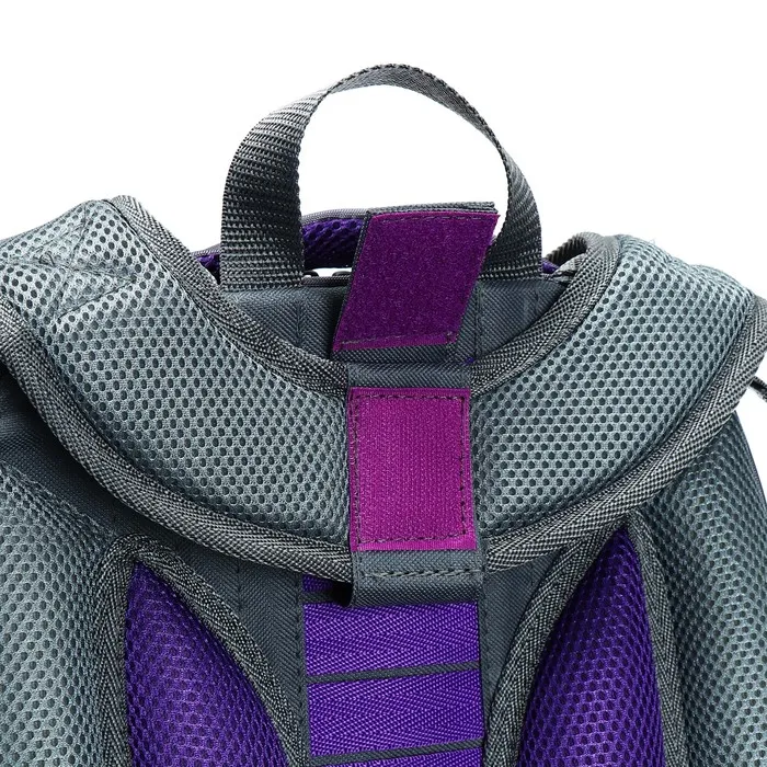 Ранец из формованного EVA-материала и высокопрочного непромокаемого полиэстера. Два вместительных отделения на реверсивной пластиковой молнии; в первом — «плавающие» перегородки для тетрадей и учебников, во втором – большой карман из сетки и карманы-органайзеры. Спинка с анатомическими элементами дополнительно укреплена пластиком, сверху – дышащая трехслойная сетка. Лямки-маечка плотные, мягкие. Регулируются по длине и высоте. Ранец снабжен нагрудным фиксатором и двумя боковыми карманами из прочной сетки. Есть мягкая ручка для переноски и дополнительная петлевая ручка для размещения ранца на крюке. На дне две пластиковые ножки. Ранец имеет светоотражающие элементы на лямках и корпусе. Брелок в комплекте.