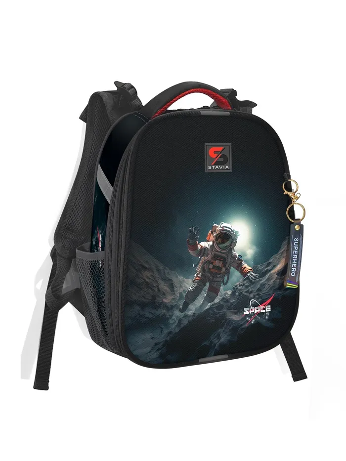 Рюкзак каркасный школьный 38×30×16 см, эргономичная спинка, Stavia «Космонавт», чёрный — Характеристики