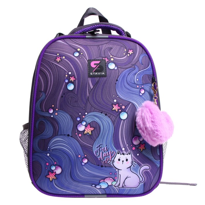Рюкзак каркасный школьный 38×30×16 см, эргономичная спинка, Stavia «Котик» — Характеристики