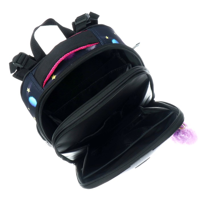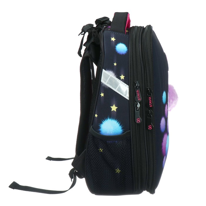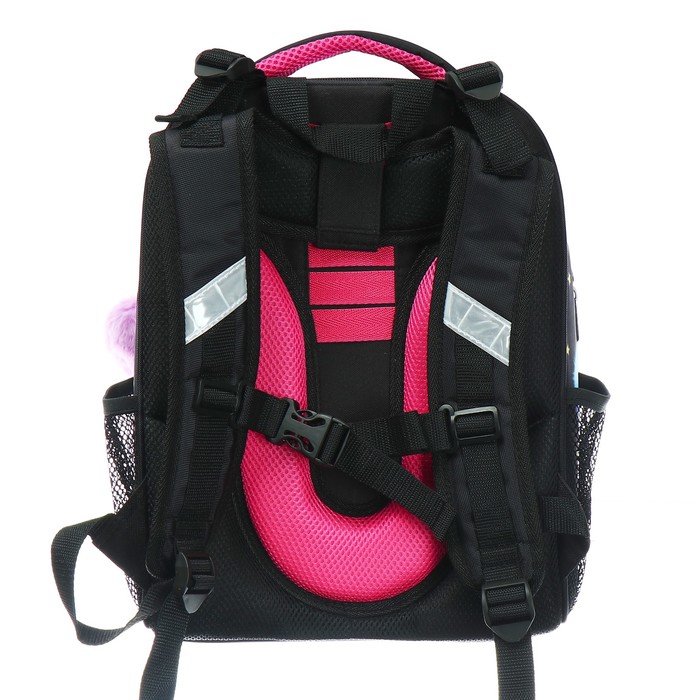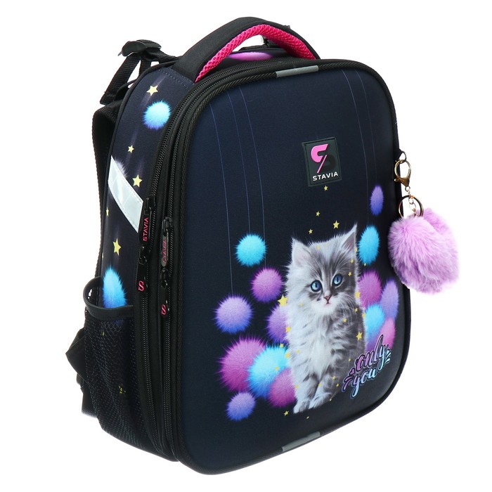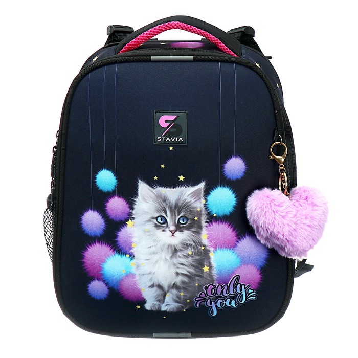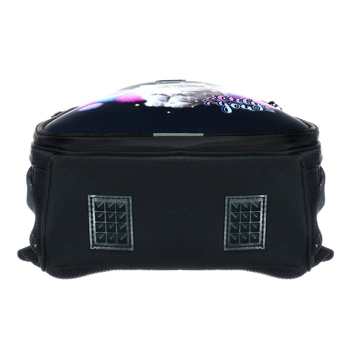 Рюкзак каркасный школьный 38×30×16 см, эргономичная спинка, Stavia «Котёнок в пушках», чёрный — Характеристики
