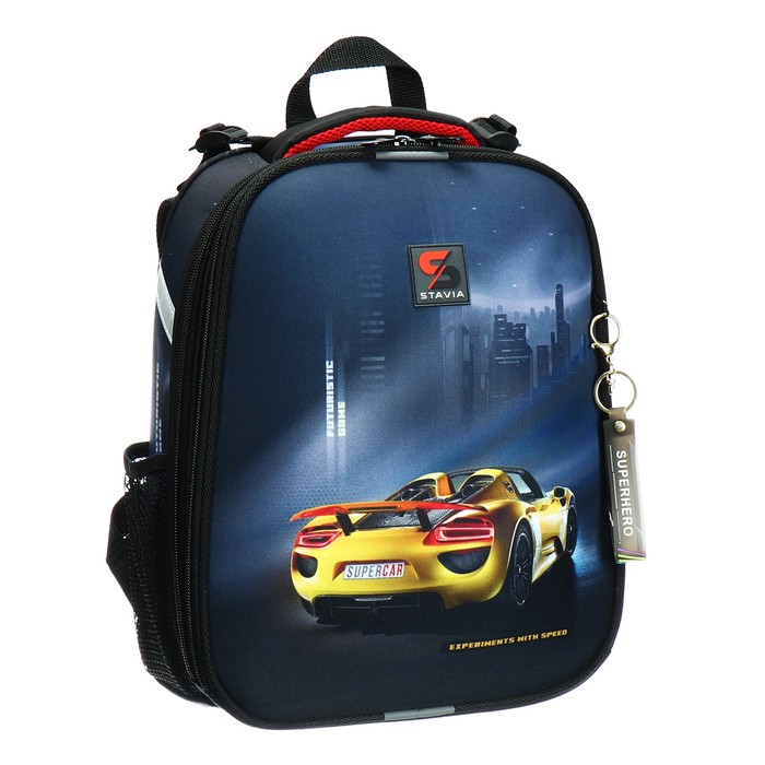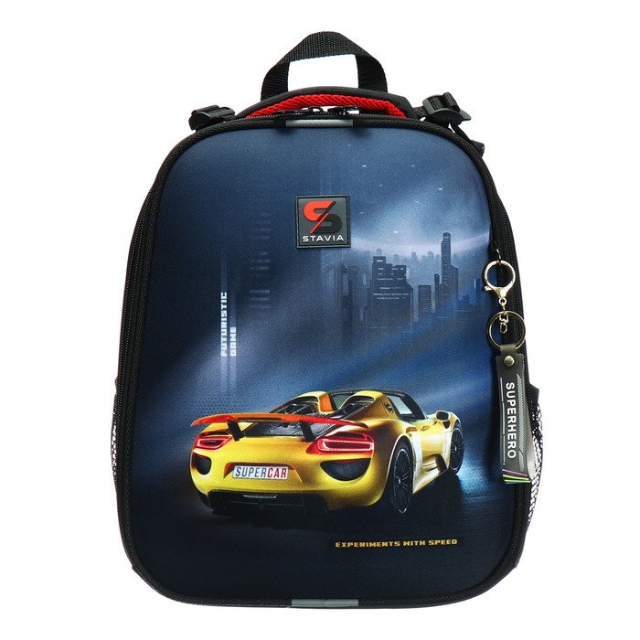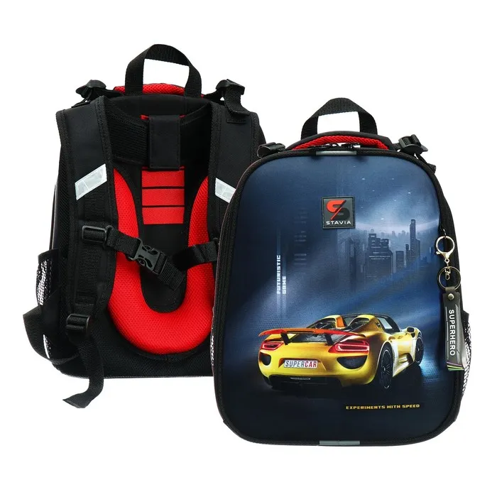 Рюкзак каркасный школьный 38×30×16 см, эргономичная спинка, Stavia «Жёлтая машина», чёрный — Характеристики