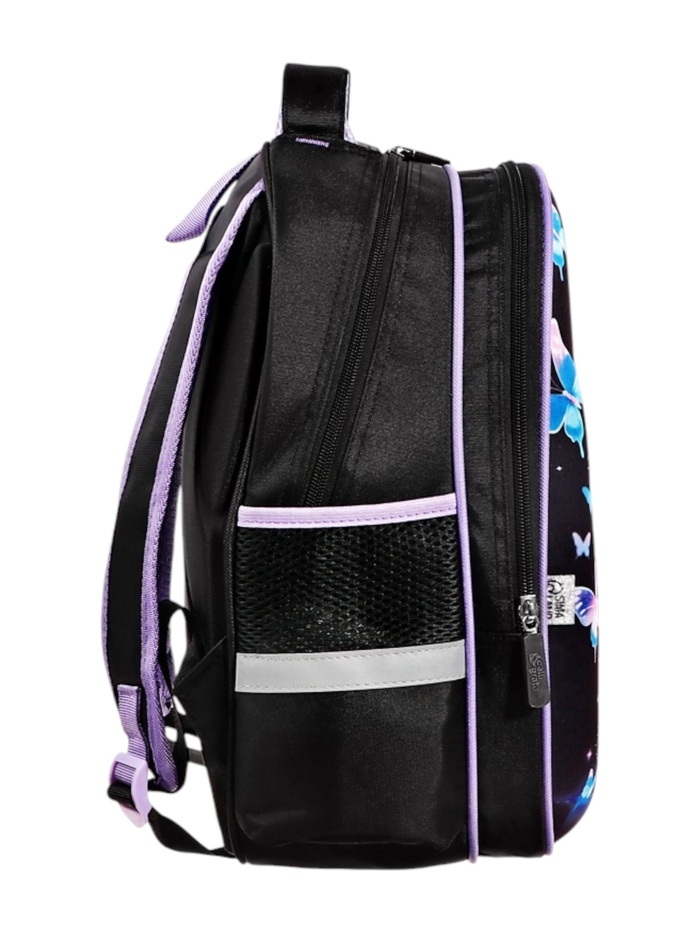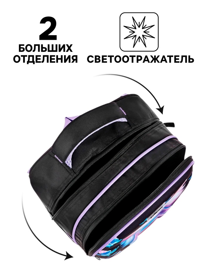 Рюкзак школьный на молнии, с карманами, с принтом, фиолетовый