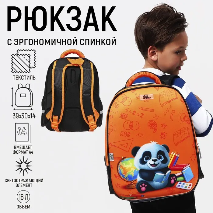 Рюкзак каркасный школьный Calligrata «Панда», 39×30×14 см — Характеристики