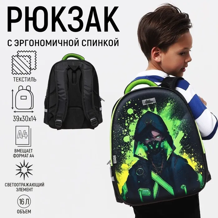 Рюкзак каркасный школьный Calligrata «В маске», 39×30×14 см — Характеристики