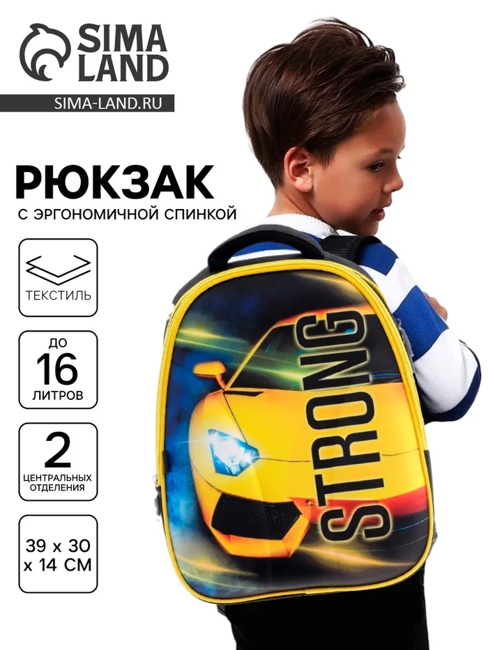 Рюкзак каркасный школьный «Желтая тачка», 39×30×14 см — Характеристики