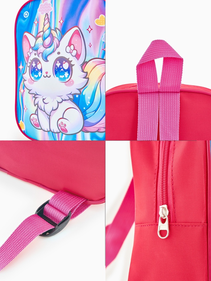 Рюкзак маленький «Волшебный котик» Выбражулька, для девочки, 20.5×9×24 см, ярко-розовый — Характеристики