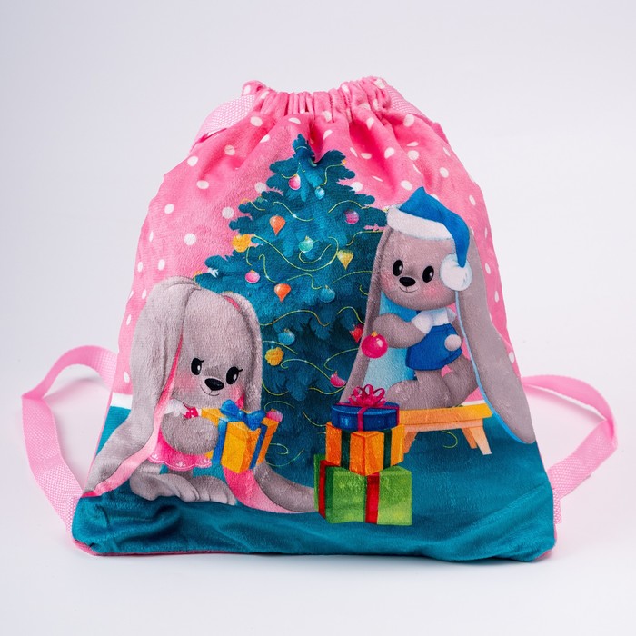 Рюкзак-мешок для девочки новогодний «Зайки и подарки», 35 х 30 см — Характеристики