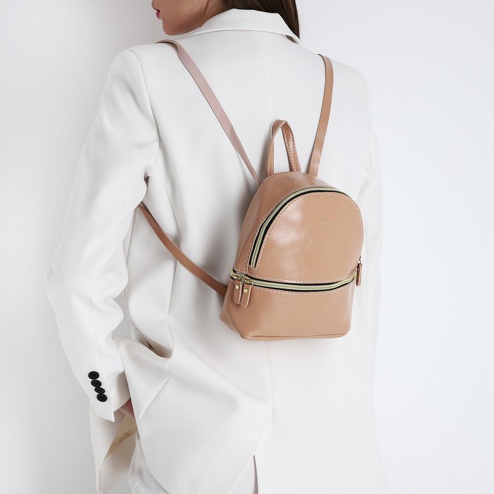 Рюкзак-мини из искусственной кожи на молнии, цвет пудровый — Характеристики