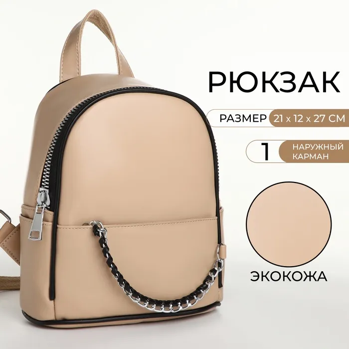 Рюкзак-мини женский Novaria на молнии, с карманом, бежевый — Характеристики