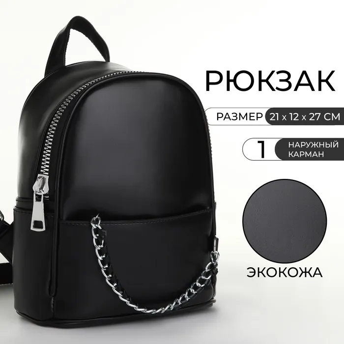 Рюкзак-мини женский Novaria на молнии, с карманом, чёрный — Характеристики