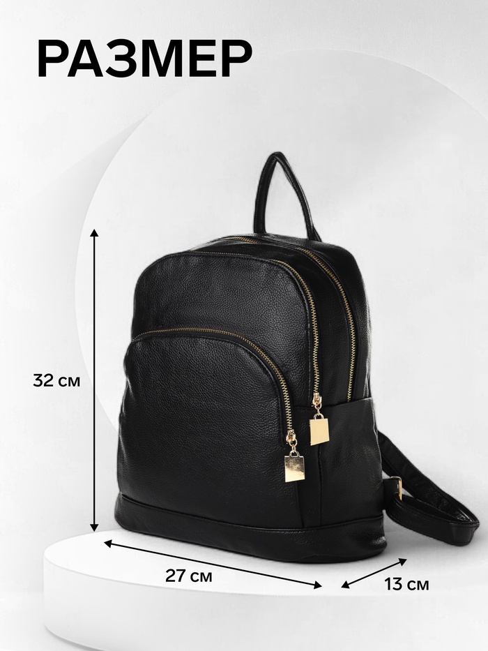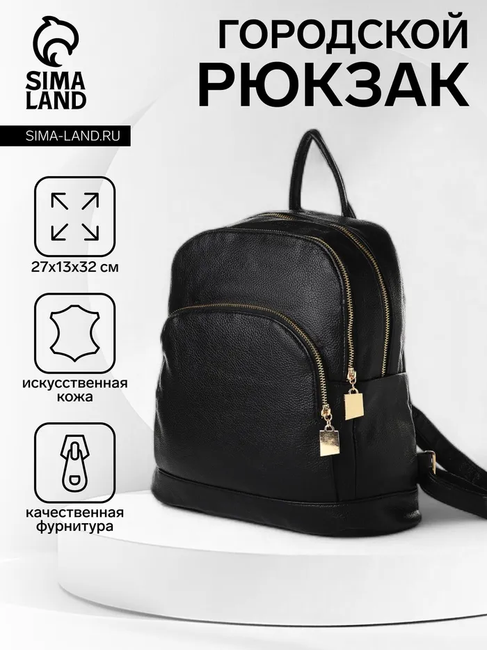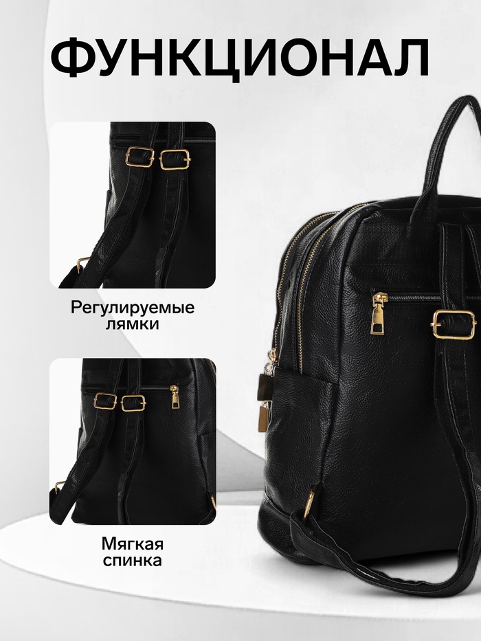 Рюкзак-мини женский, с 2 отделами и карманом, чёрный — Характеристики