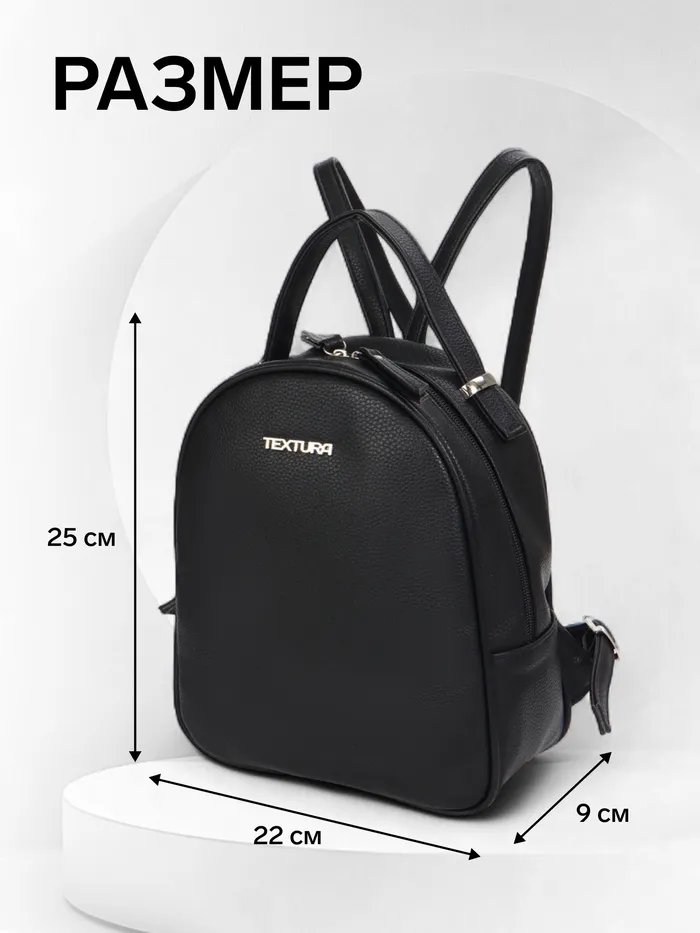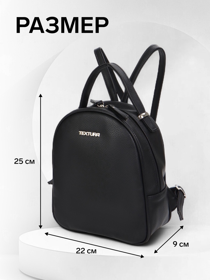 Рюкзак-мини женский TEXTURA, на молнии, чёрный — Характеристики