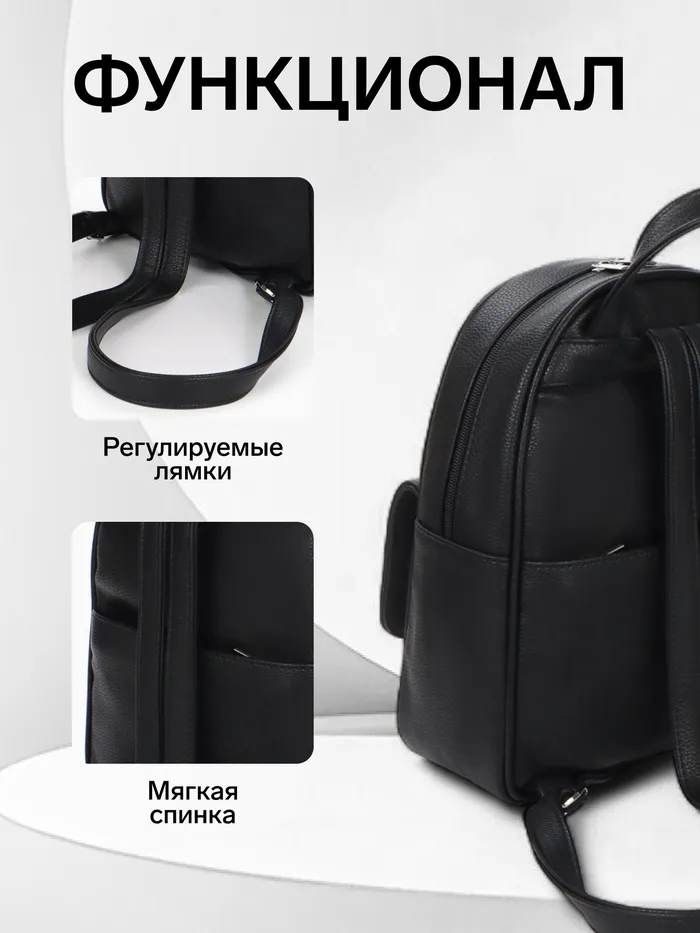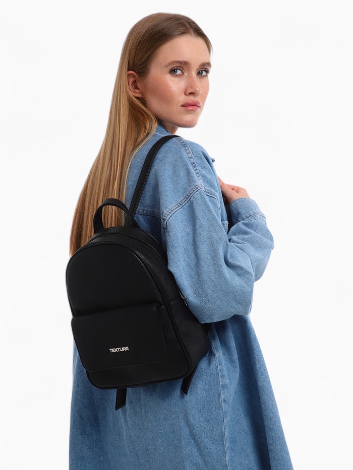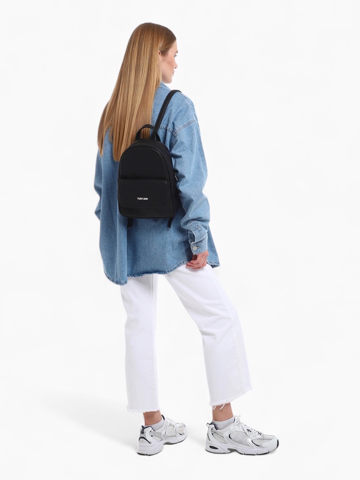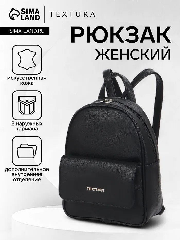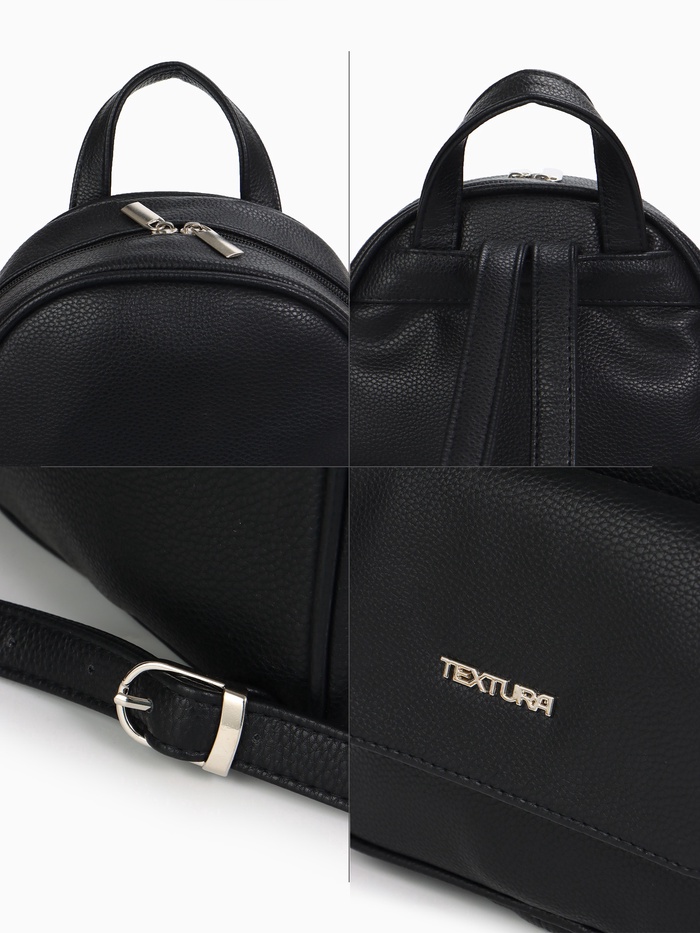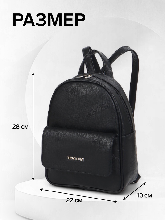 Рюкзак-мини женский TEXTURA, на молнии, с карманами, чёрный — Характеристики