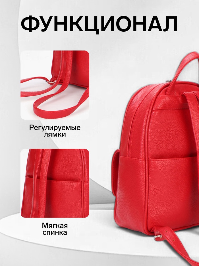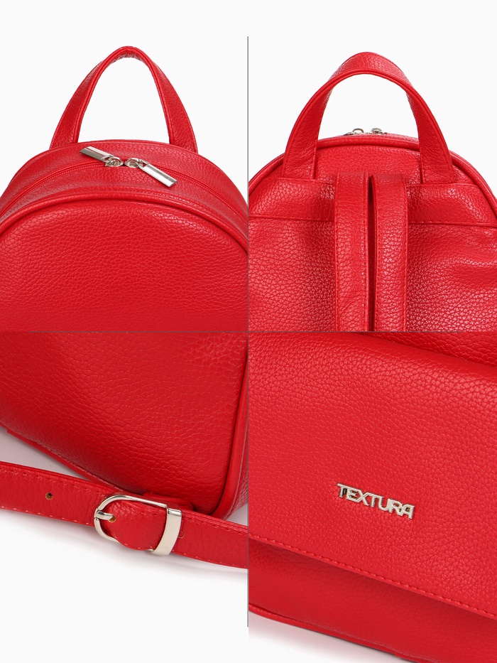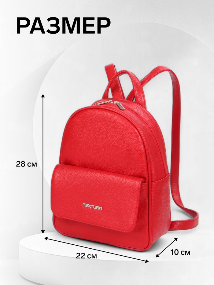 Рюкзак-мини женский TEXTURA, на молнии, с карманами, красный — Характеристики