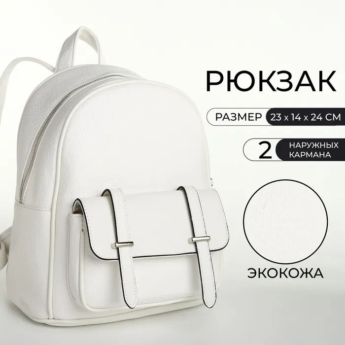 Рюкзак-мини женский Velaria на молнии, с карманом, белый — Характеристики