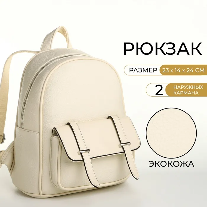 Рюкзак-мини женский Velaria на молнии, с карманом, молочный — Характеристики