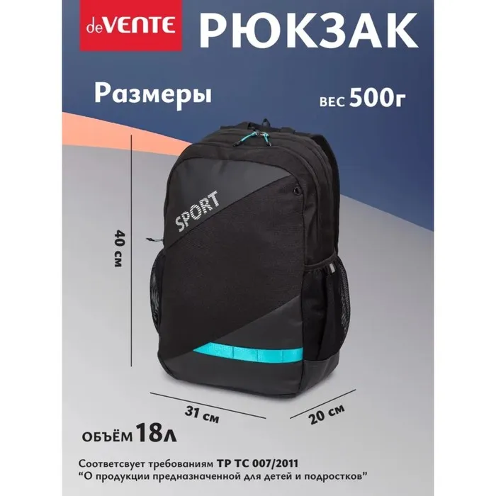Рюкзак молодежный 40×31×20, эргономичная спинка, deVENTE Sport 18L, 7032416 — Характеристики