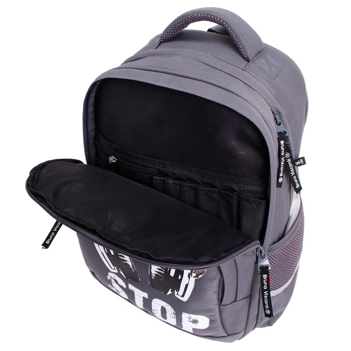 Рюкзак с авторским дизайном, с использованием сложнейших современных технологий нанесения на ткань. Ткань водонепроницаемая, морозостойкая, с повышенной износостойкостью, грязеотталкивающая. Модель имеет жесткий корпус. Двунаправленные-реверсивные надежные 8-мм молнии с 5-см пуллером на замках, что позволяет легко открывать и закрывать рюкзак. Эргономичная спинка, комфортная при длительном использовании, вентилируемая, с анатомическими подушечками. Регулируемые лямки анатомической формы и ручка с усиленным креплением готовы к любым нагрузкам. Износостойкая фирменная подкладка BRUNO VISCONTI, тщательно подобранная и сочетающаяся с дизайном и цветом рюкзака.