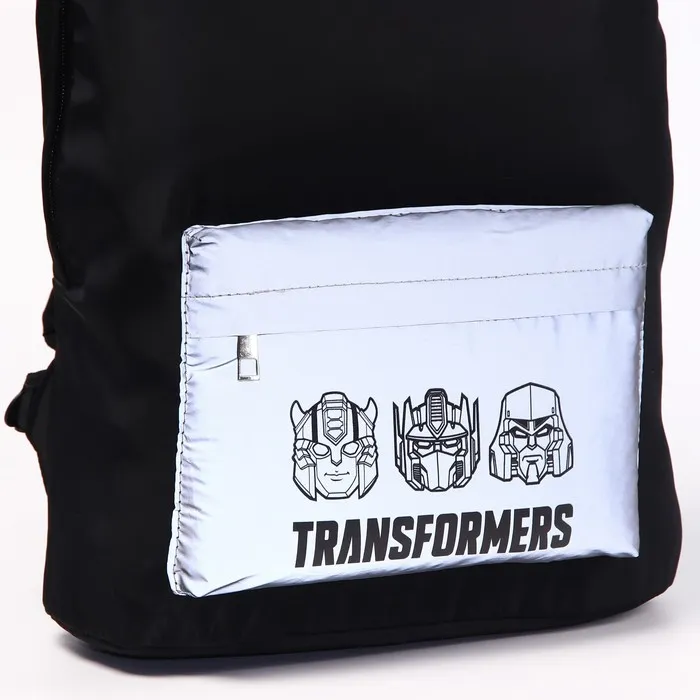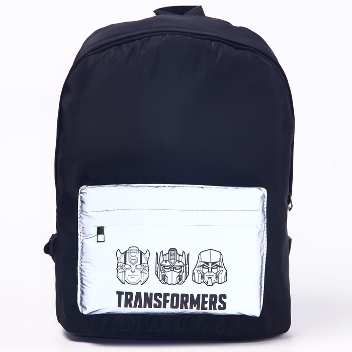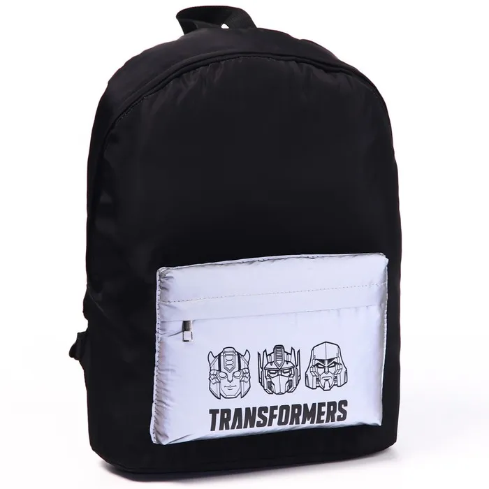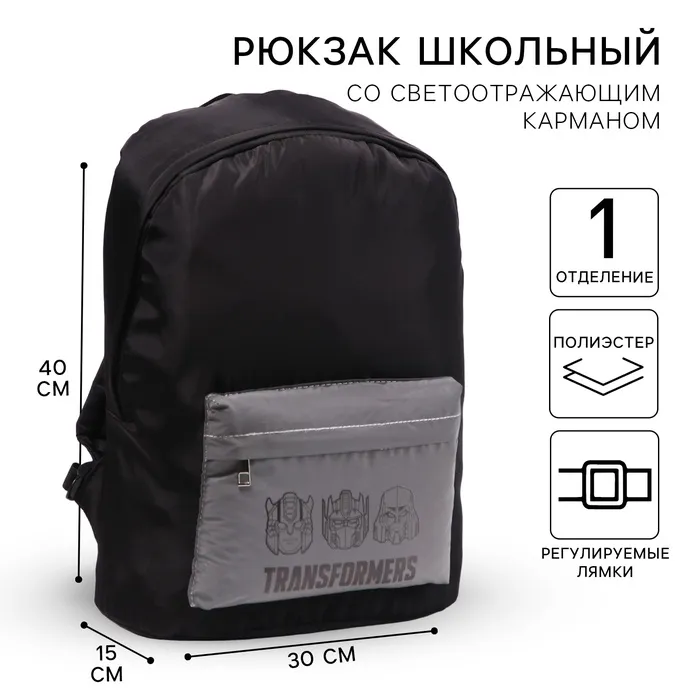 Рюкзак молодежный со светоотражающим карманом, черный, 30 см × 15 см × 40 см «Робот, Трансформеры» — Характеристики