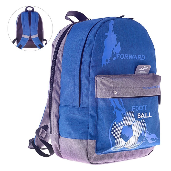 Рюкзак молодёжный, 38 х 28 х 19 см, эргономичная спинка, Calligrata Э "Футбол", синий — Характеристики