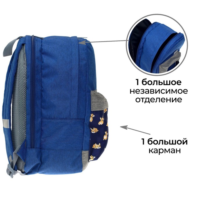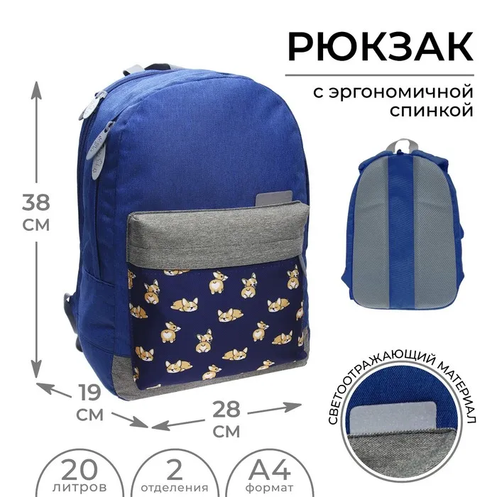 Рюкзак молодёжный, 38 х 28 х 19 см, эргономичная спинка, Calligrata Э "Корги" — Характеристики