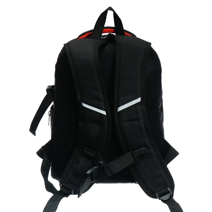 Рюкзак из полиэстера плотностью 600Д с водоотталкивающей ПУ-пропиткой. Размер 28 х 40 х 18 см. Вес 0,590 кг. Два вместительных отделения, два удобных кармана на передней стенке, один боковой карман, два внутренних кармана. Спинка и лямки мягкие, с анатомическими вставками. На лямках и передней стенке рюкзака есть светоотражающие элементы.