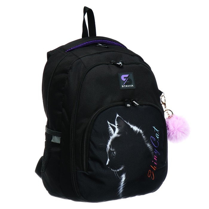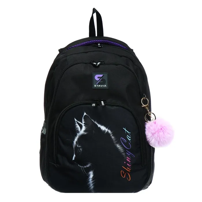 Рюкзак молодёжный, 42×31×13 см, эргономичная спинка, Stavia «Shiny cat», чёрный — Характеристики