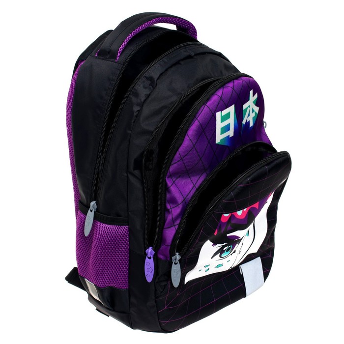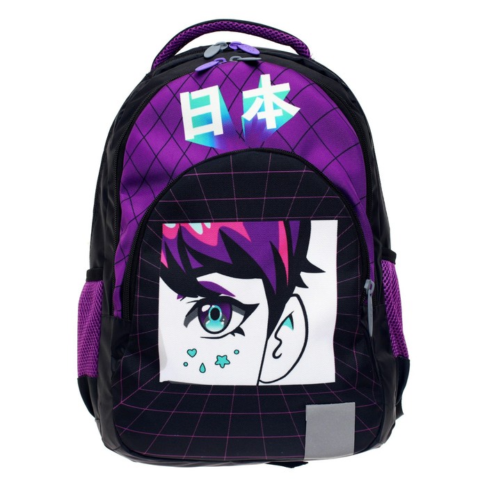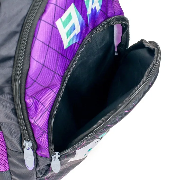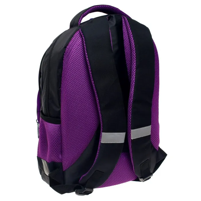 Ученический рюкзак для среднего школьного возраста предназначен для переноски личных вещей и школьных принадлежностей. Верх изделия выполнен из прочного водоотталкивающего материала с покрытием ПВХ. Отдельные элементы оформлены оригинальным принтом. Внутренняя поверхность изготовлена из цветной подкладочной ткани, соответствующей дизайну.
