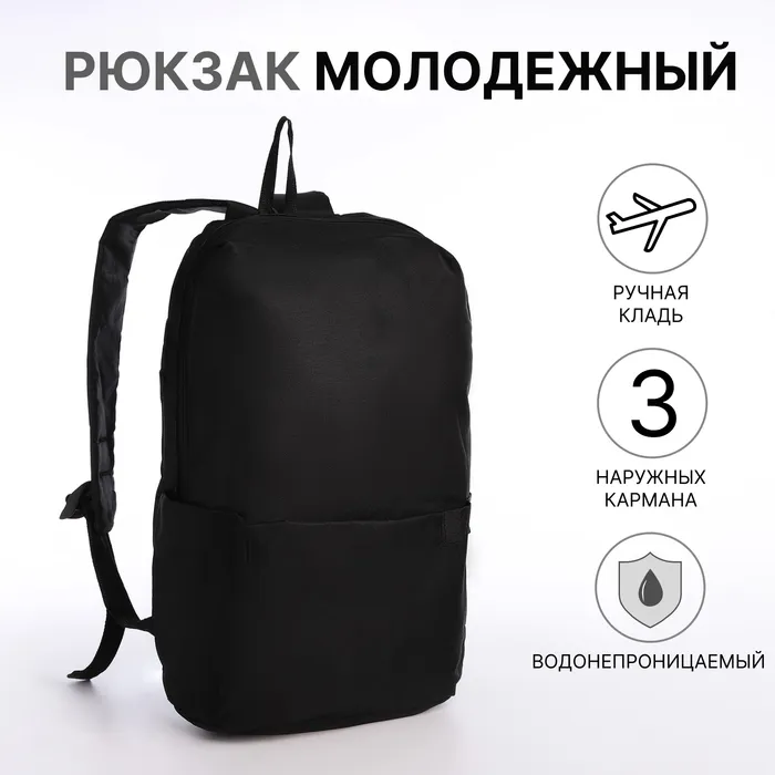 Рюкзак молодёжный Dance на молнии, водонепроницаемый, с карманами, чёрный — Характеристики