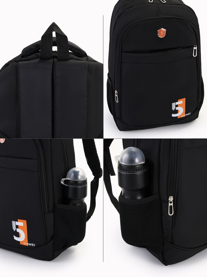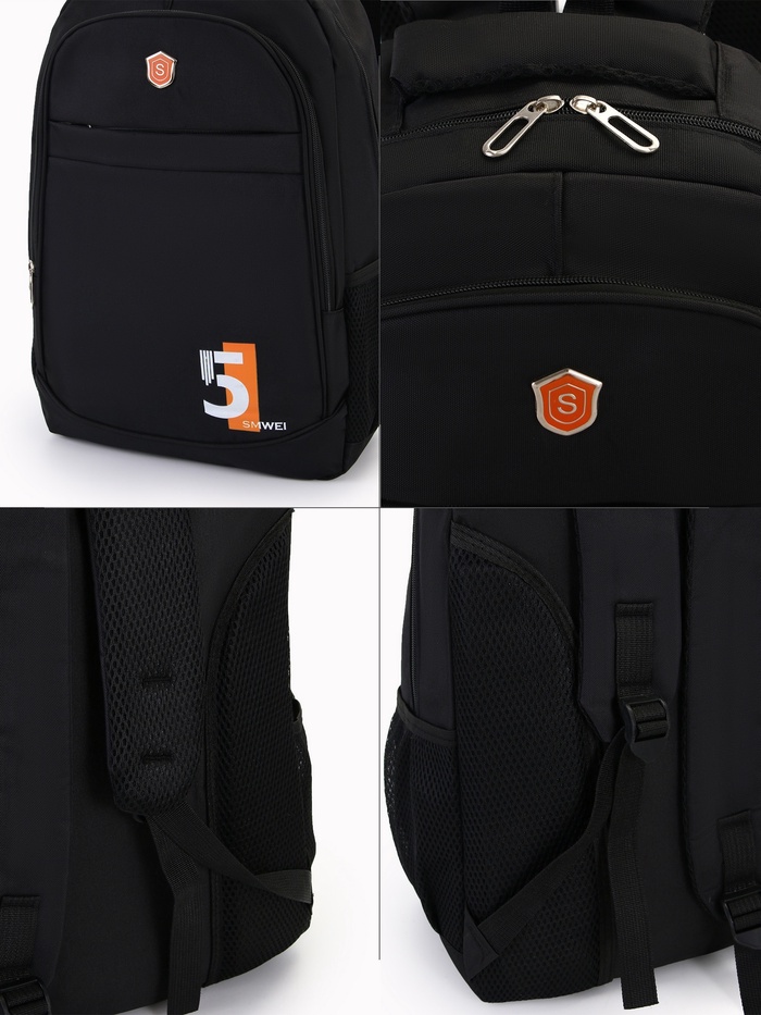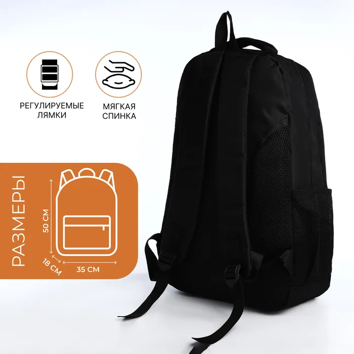 Рюкзак молодёжный из текстиля на молнии, 4 кармана, цвет чёрный/рыжий — Характеристики
