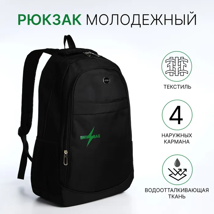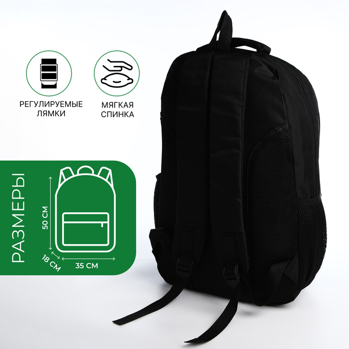 Рюкзак молодёжный из текстиля на молнии, 4 кармана, цвет чёрный/зелёный — Характеристики