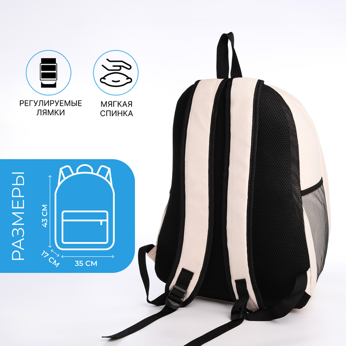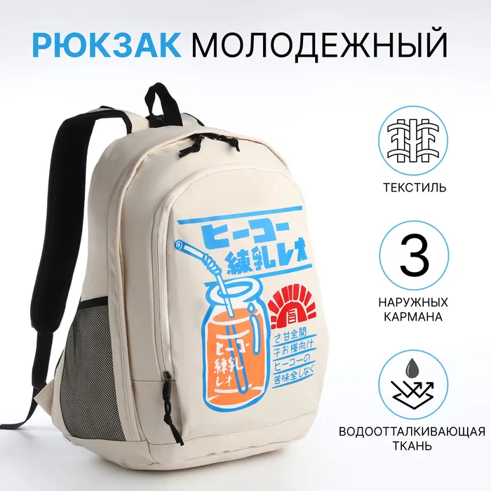 Рюкзак молодёжный на молнии, 3 наружных кармана, цвет бежевый — Характеристики