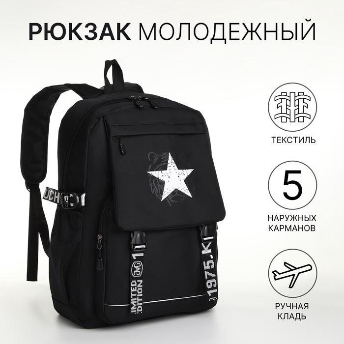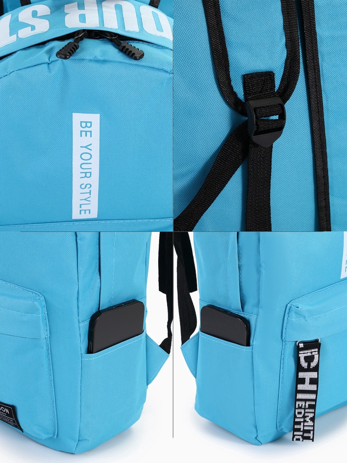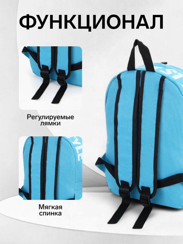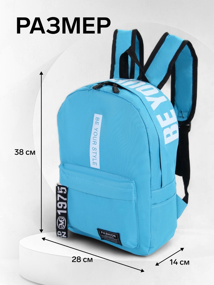 Рюкзак молодёжный на молнии, с карманами, размер 27×10×37.5 см, голубой — Характеристики