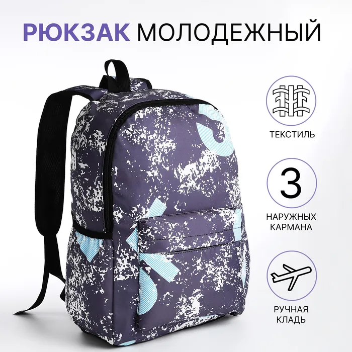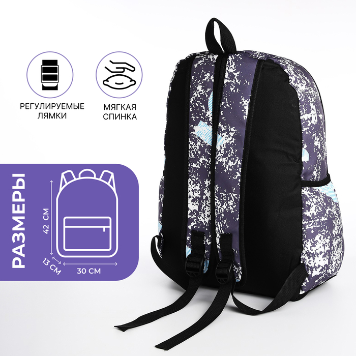 Рюкзак молодёжный на молнии, с карманами, размер 30×13×42 см, серый — Характеристики