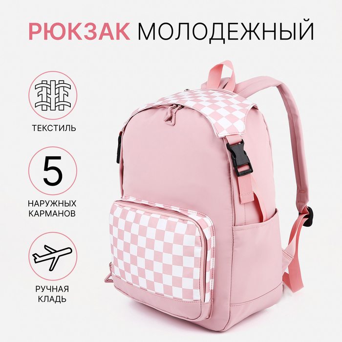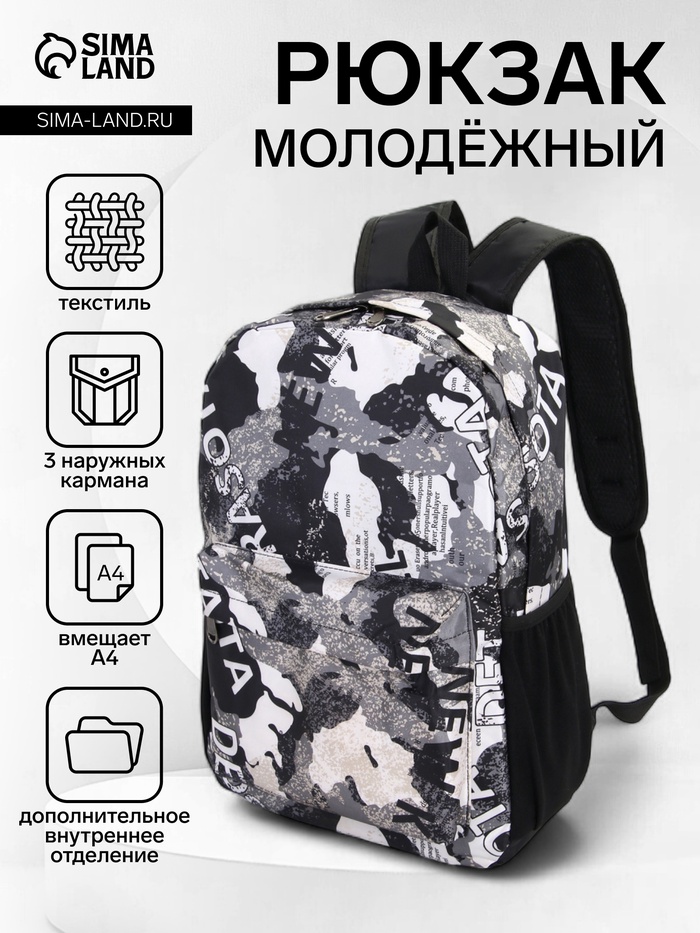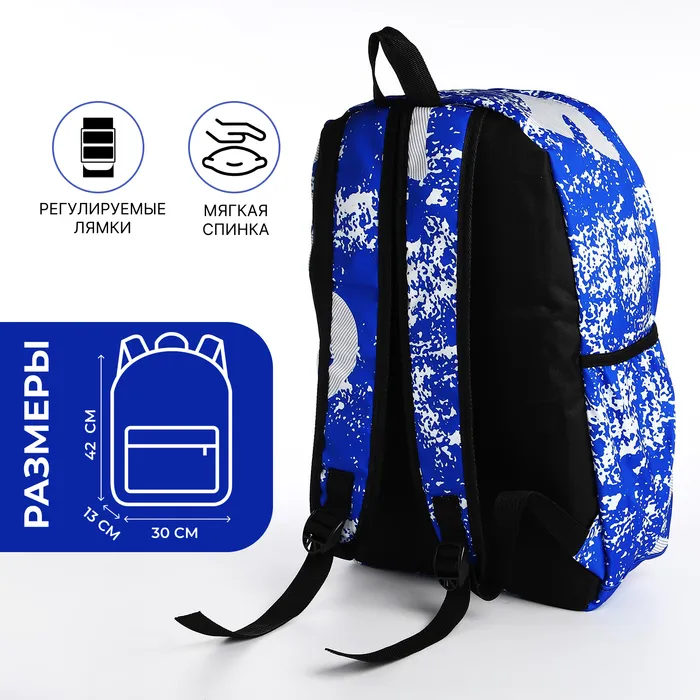 Рюкзак молодёжный на молнии, с карманами, размер 30×13×42 см, синий — Характеристики
