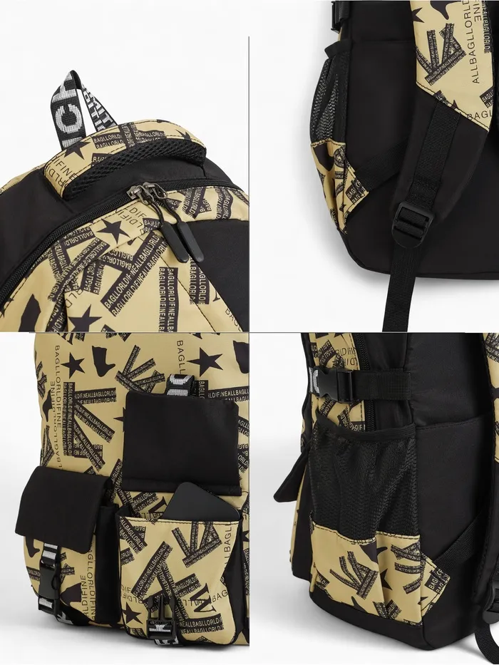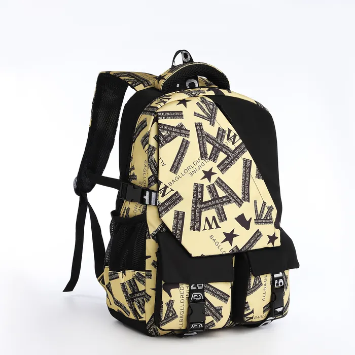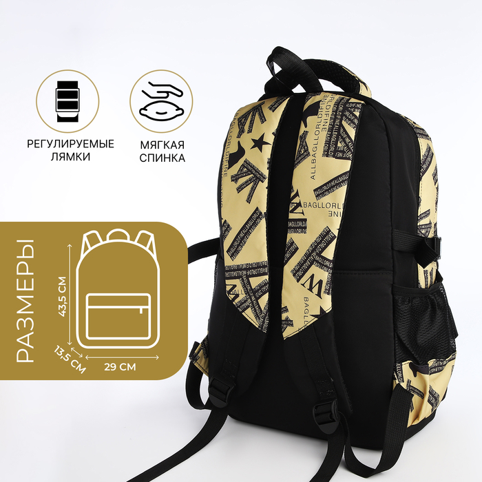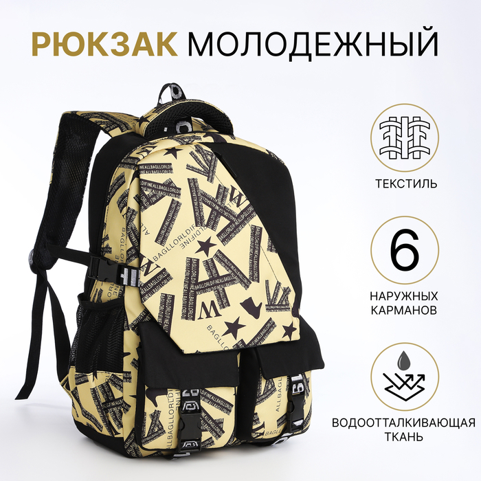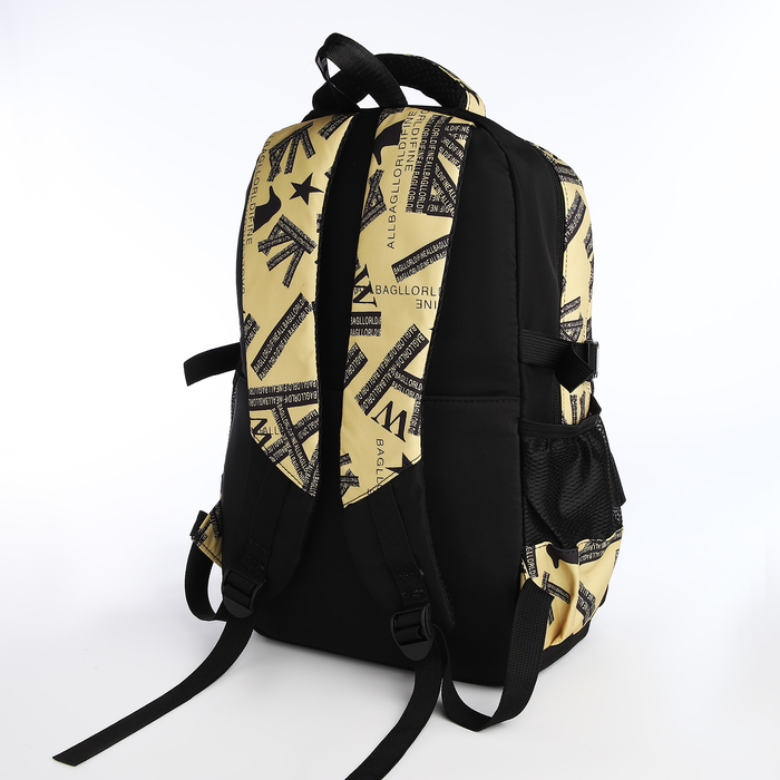 Рюкзак молодёжный на молнии, с карманами, с абстрактным принтом, размер 29×13.5×43.5 см, жёлтый — Характеристики
