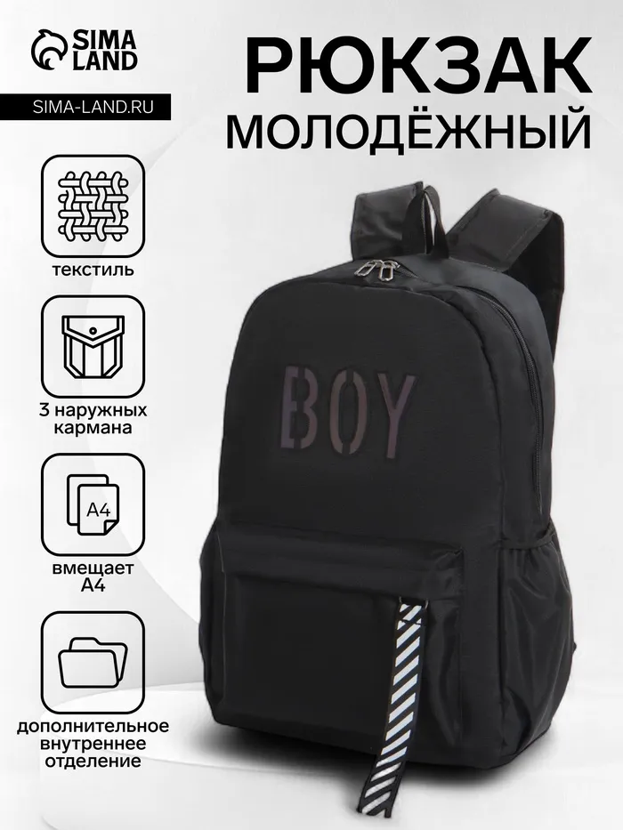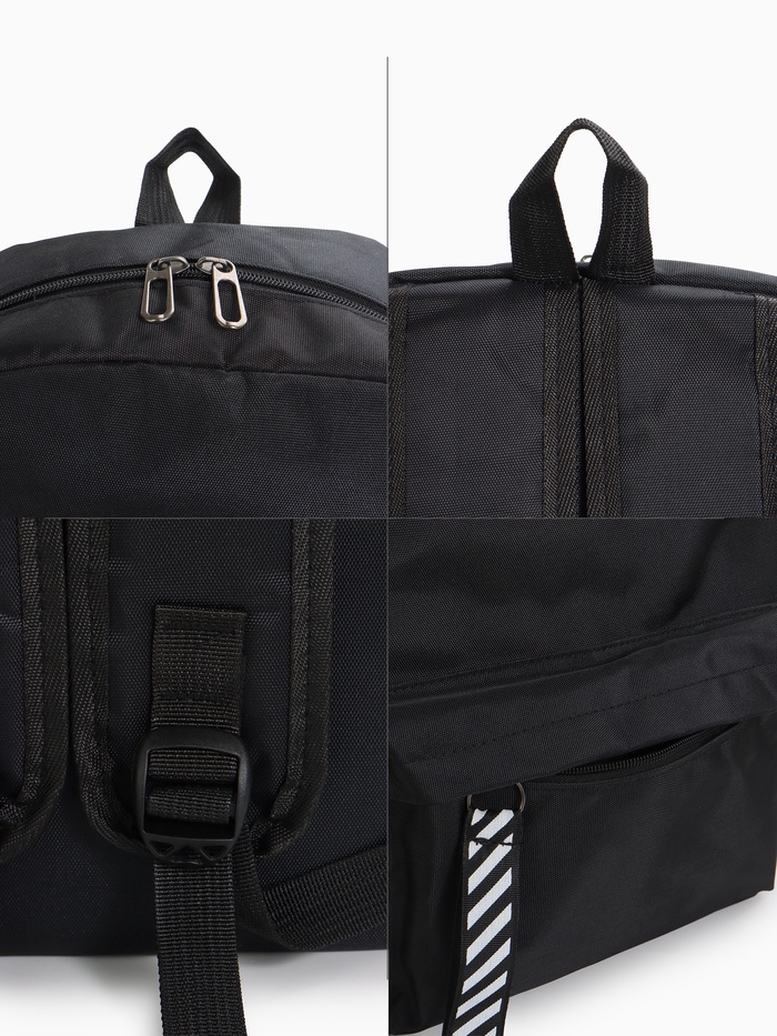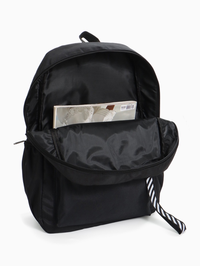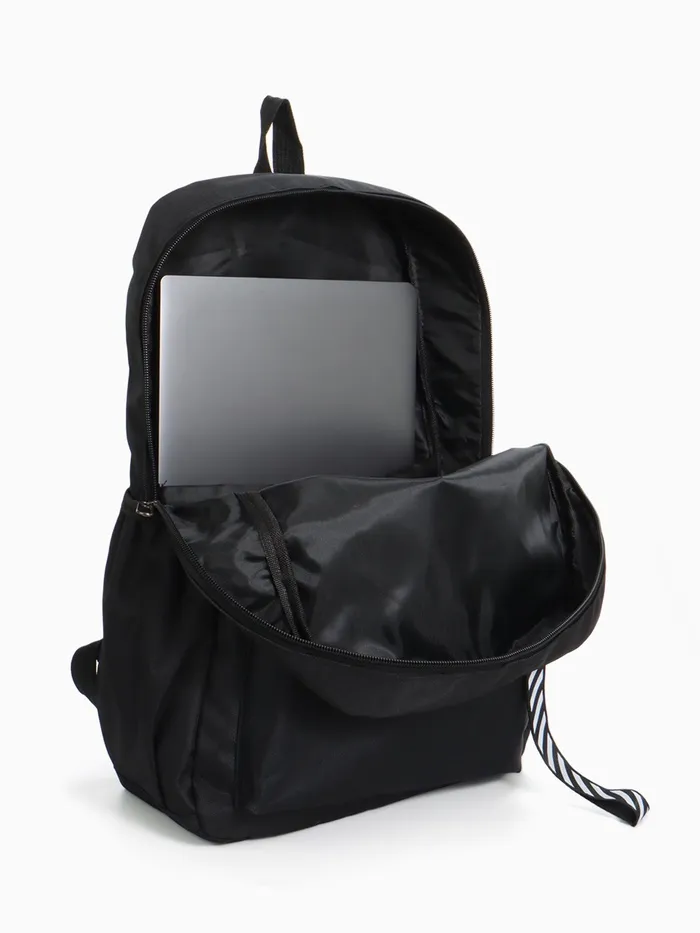 Рюкзак молодёжный на молнии, с карманами, с надписью, размер 31×15×45 см, чёрный — Характеристики
