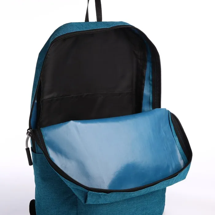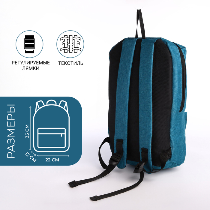 Рюкзак молодёжный на молнии, водонепроницаемый, 3 наружных кармана, цвет бирюзовый — Характеристики